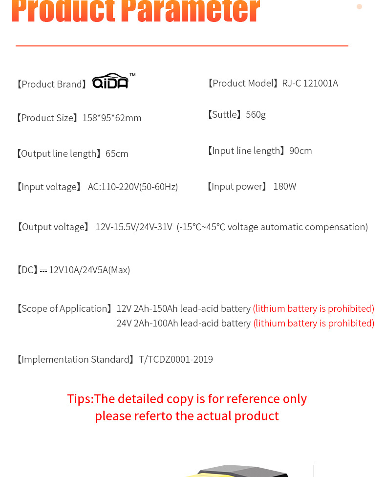 Scope of Application: 12V 2Ah-150Ah lead-acid battery (lithium battery is prohibited)